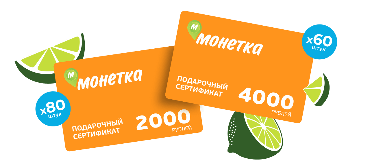 Сертификаты на покупки в магазинах «Монетка» номиналом 2000 и 4000 рублей